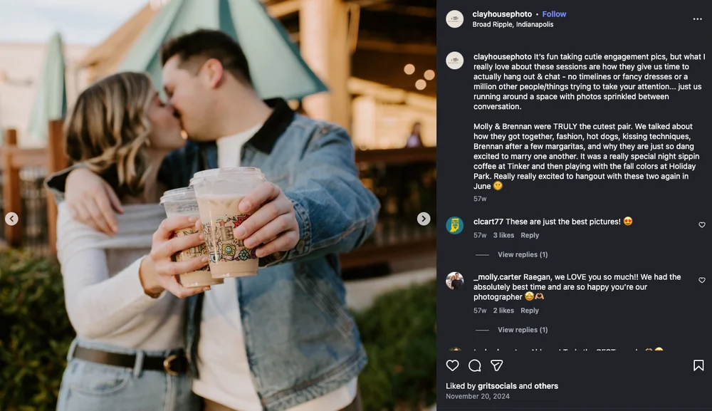 As the pace slows and crowds thin, neighborhoods around Midtown Carmel, the Arts & Design District, and nearby parks take on a quiet, storybook quality. Whether your style is classic, modern, or editorial, winter engagement photos in Carmel offer a clean, elevated backdrop for documenting your next chapter.
